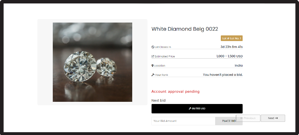 6. If you are already registered; simply login to your account at the top right of AV Globale’s website, you would need to wait for the approval confirmation before you can proceed further with the online auctions. Otherwise you will see a message displaying while you are bidding “Account approval pending”.