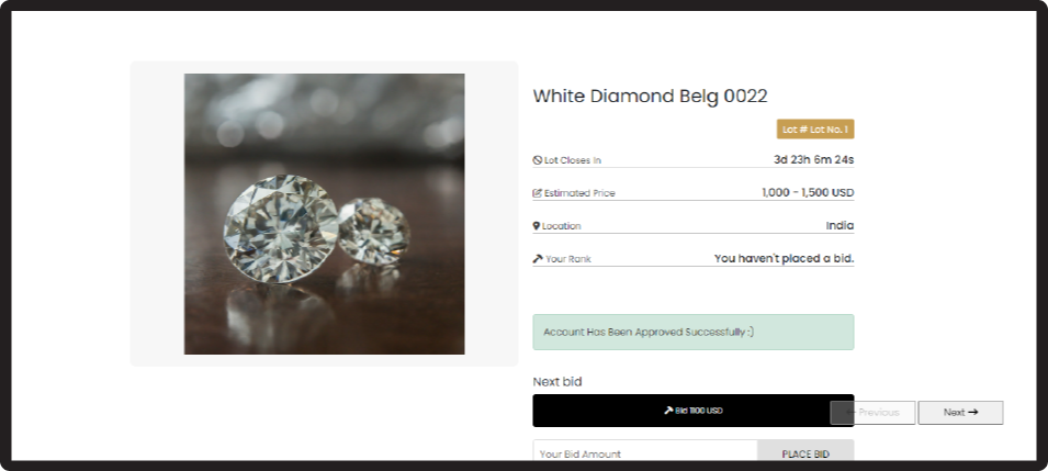 You will receive an email shortly confirming your bid, mentioning the 'Winning Status'.