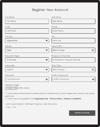 Are you placing your bids for the first time with AV Globale’s AV Globale Auction? You will need to register to create an account on our website. Moving on, your account needs to be approved before your bid can be placed in the AV Globale Auction.
