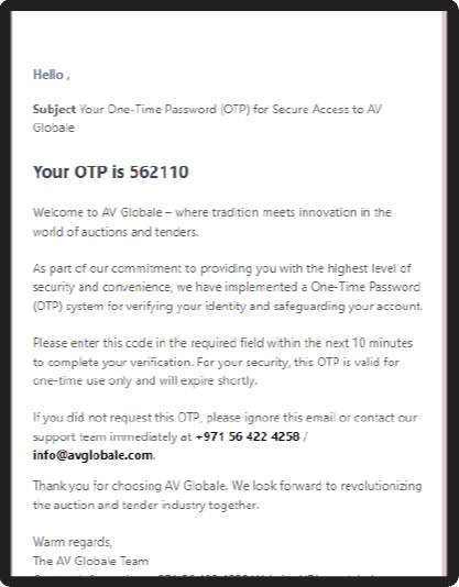 If you are participating in AV Globale Auction bidding for the first time, we will require ID documents for verification purposes.